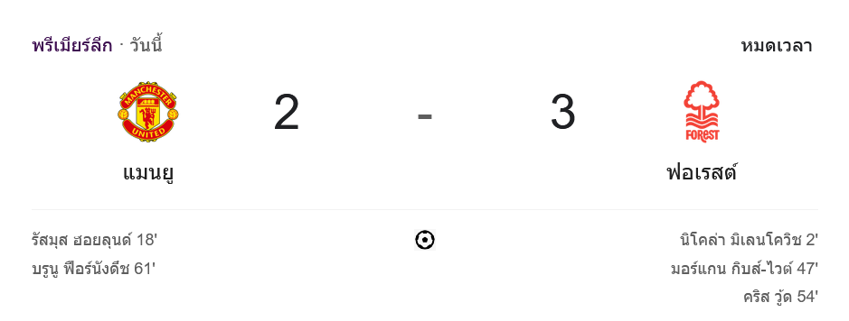 บ้านผลบอล สรุปผล ฟอเรสต์บุกช็อก! แมนฯ ยูไนเต็ดพ่ายคาบ้าน 2-3 ในศึกพรีเมียร์ลีก 2024
