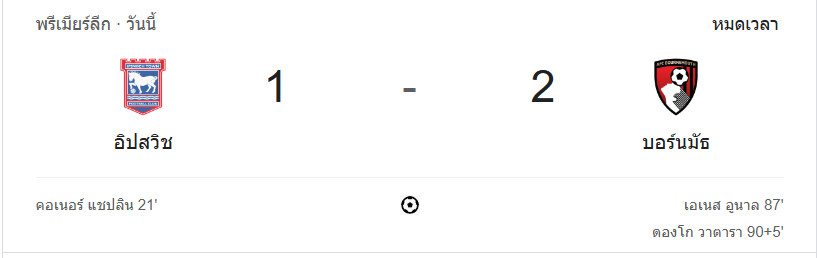 เกมนี้จบลงด้วยชัยชนะของบอร์นมัธที่มาแบบดราม่าและดุเดือด อิปสวิชต้องกลับไปปรับแผนอีกครั้งหลังพ่ายคาบ้าน ส่วนบอร์นมัธโชว์ฟอร์มอันแข็งแกร่งในช่วงท้ายเกม แฟนบอลที่ติดตามผลบอลสดคงสนุกกับความเข้มข้นของเกมนี้