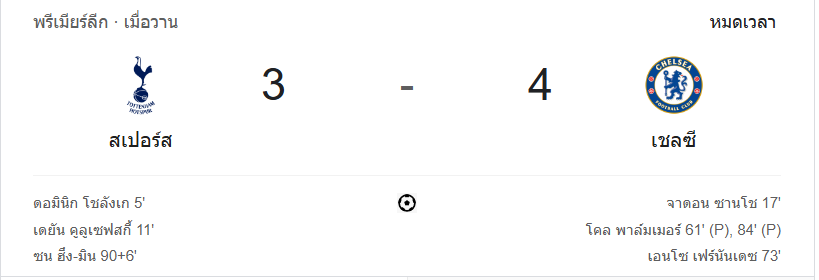 ศึกพรีเมียร์ลีก เชลซีเฉือนสเปอร์ส 4-3 ทดเจ็บลุ้นระทึกจนหยดสุดท้าย