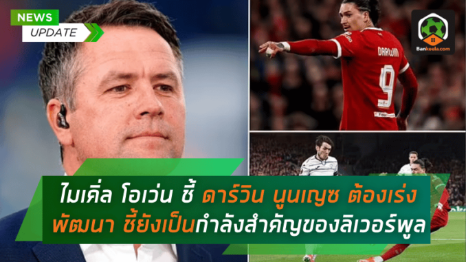 ไมเคิ่ล โอเว่น อดีตกองหน้าตำนานของ ลิเวอร์พูล และทีมชาติอังกฤษ ได้เปิดใจวิเคราะห์ถึงผลงานของ ดาร์วิน นูนเญซ ศูนย์หน้าชาวอุรุกวัยที่ยังคงถูกวิจารณ์อย่างต่อเนื่องเกี่ยวกับความสม่ำเสมอในการเล่นกับทีม “หงส์แดง” แม้ว่าจะมีศักยภาพและความสามารถที่น่าทึ่ง แต่โอเว่นเชื่อว่าดาวยิงรายนี้ยังต้องพัฒนาอีกมากหากหวังยกระดับตัวเองไปสู่นักเตะระดับแนวหน้า