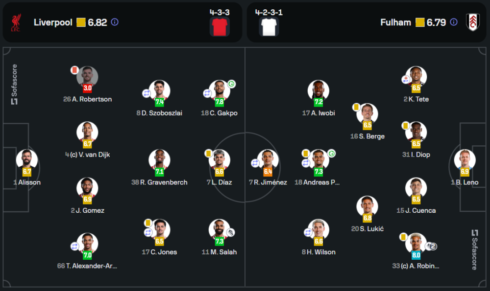 ลิเวอร์พูลไม่ยอมแพ้ง่ายๆ โคดี้ กัคโปยิงประตูตีเสมอในนาทีที่ 47 จากการเปิดบอลสุดเฉียบของโม ซาลาห์ ทว่าฟูแล่มกลับขึ้นนำอีกครั้งในนาทีที่ 76 จากโรดริโก้ มูนิซ อย่างไรก็ตาม ลิเวอร์พูลไม่ปล่อยให้ทีมเยือนคว้าชัยชนะไปง่ายๆ ดิโอโก้ โชต้าเป็นฮีโร่ทำประตูสำคัญในนาทีที่ 86 ช่วยให้ลิเวอร์พูลตีเสมอได้สำเร็จ