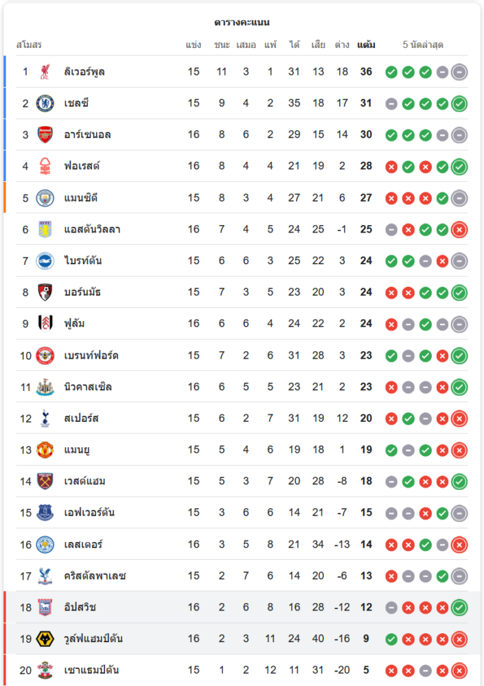 วูล์ฟแฮมป์ตันยังคงอยู่อันดับที่ 19 ของตาราง มีเพียง 9 คะแนนจาก 16 นัด ขณะที่อิปสวิชขึ้นมาอยู่ที่อันดับ 18 มี 12 คะแนน