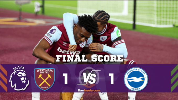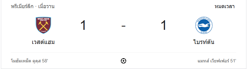 ผลบอลสด พรีเมียร์ลีก 2024 ระหว่าง เวสต์แฮมยูไนเต็ด 1-1 ไบรท์ตัน โฮฟ อัลเบี้ยน วันนี้ 21/12/67