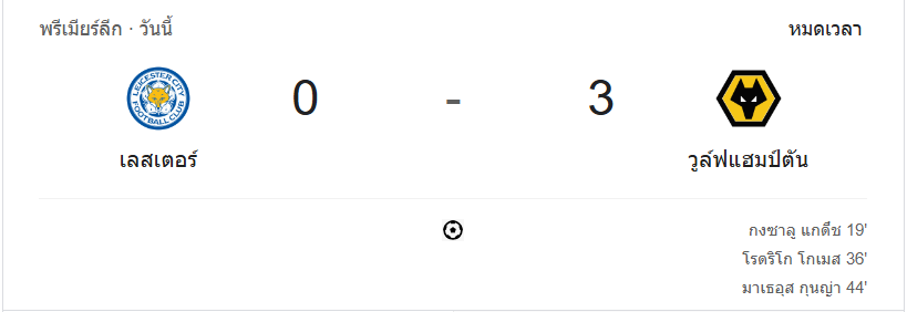 นาทีที่ 90+3: ผู้ตัดสินเป่านกหวีดจบเกม วูล์ฟส์เอาชนะเลสเตอร์ ซิตี้ไปได้ด้วยสกอร์ 3-0
