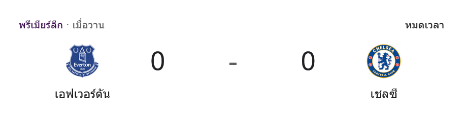 สำหรับเอฟเวอร์ตันและเชลซี การแข่งขันครั้งต่อไปยังไม่ได้ยืนยันใน ตารางบอล อย่างเป็นทางการ บ้านกีฬา จะอัปเดตให้ติดตามเร็วๆ นี้