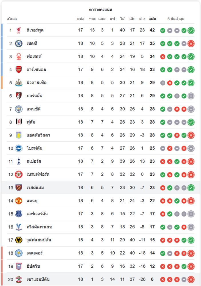 จากชัยชนะนี้ เวสต์แฮมยูไนเต็ดขยับขึ้นมาอยู่ในอันดับที่ 13 ด้วยคะแนนรวม 23 แต้ม ขณะที่เซาแธมป์ตันยังคงจมอยู่ท้ายตารางด้วยเพียง 6 คะแนน