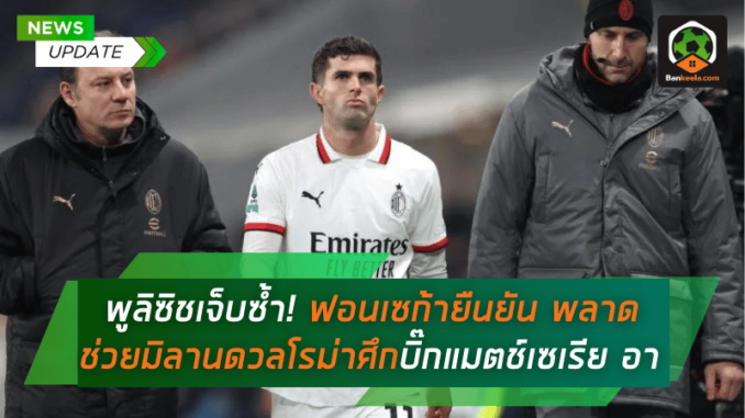 เปาโล ฟอนเซก้า กุนซือของ เอซี มิลาน ออกมายืนยันอย่างชัดเจนว่า คริสเตียน พูลิซิช ปีกคนสำคัญของทีม จะหมดสิทธิ์ลงสนามในเกมเปิดบ้านรับการมาเยือนของ อาแอส โรม่า ในศึก กัลโช่ เซเรีย อา อิตาลี วันอาทิตย์ที่ 29 ธันวาคมนี้ หลังประสบปัญหาบาดเจ็บครั้งใหม่ที่ข้อเท้า ทั้งที่เพิ่งฟื้นตัวจากการบาดเจ็บที่น่อง