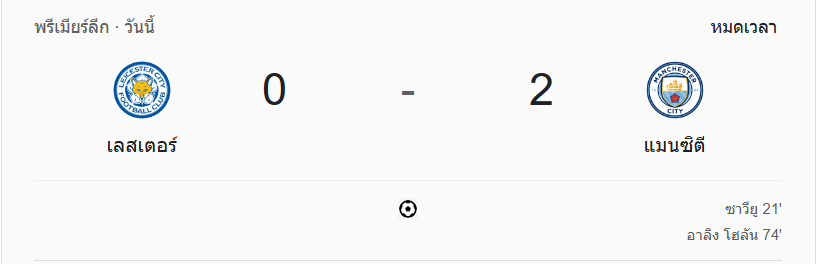 ผลบอลสด พรีเมียร์ลีก 2024 ระหว่าง ทีม เลสเตอร์ ซิตี้ vs แมนเชสเตอร์ ซิตี้ วันนี้ 29/12/67 ดูบอลย้อนหลัง คลิปไฮไลท์ ดูบอลพรีเมียร์ลีก 2024