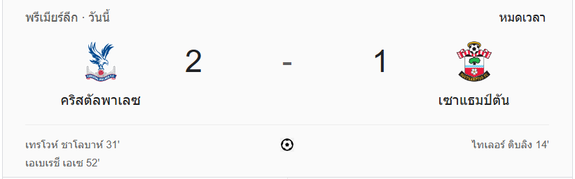 ชัยชนะครั้งนี้ทำให้คริสตัล พาเลซเก็บ 3 แต้มสำคัญได้สำเร็จ ในขณะที่เซาแธมป์ตันต้องกลับไปแก้เกมเพื่อกู้สถานการณ์ในนัดถัดไป แฟนบอลทั้งสองทีมต่างต้องลุ้นกับการเดินหน้าในลีกต่อไป