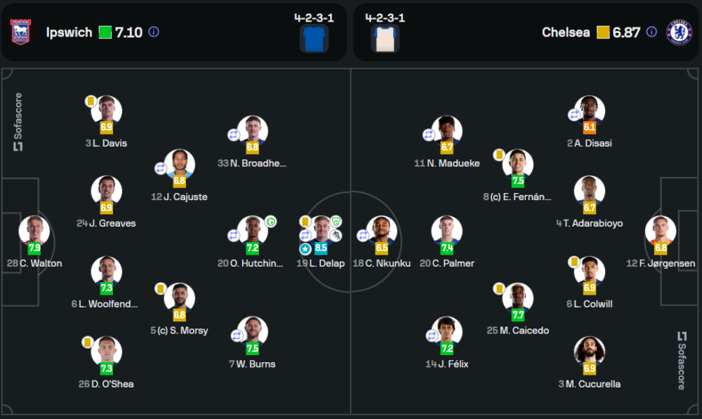 เลียม ดีแลป ได้รับตำแหน่งผู้เล่นยอดเยี่ยมด้วยการทำ 1 ประตูและ 1 แอสซิสต์ พร้อมแสดงบทบาทสำคัญในแนวรุกของอิปสวิช