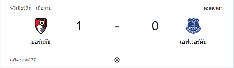 นาทีที่ 90+3: จบเกม บอร์นมัธ 1-0 เอฟเวอร์ตัน