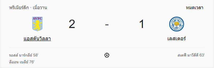 แอสตัน วิลล่าแสดงให้เห็นถึงความมุ่งมั่นและฮึดสู้จนกลับมาชนะเลสเตอร์ ซิตี้ได้สำเร็จ ผลบอลสด นัดนี้สะท้อนถึงความแข็งแกร่งของเกมรุกและการจัดการเกมของเจ้าบ้าน ขณะที่เลสเตอร์พยายามอย่างเต็มที่แต่ไม่สามารถต้านทานเกมรุกของวิลล่าได้