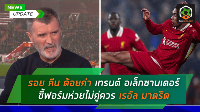 ความร้อนแรงในศึกพรีเมียร์ลีก อังกฤษ เกมแดงเดือดระหว่าง ลิเวอร์พูล และ แมนเชสเตอร์ ยูไนเต็ด ที่จบลงด้วยผลเสมอ 2-2 เมื่อวันที่ 5 มกราคมที่ผ่านมา กลายเป็นประเด็นร้อนเมื่อ รอย คีน ตำนานกองกลางของปีศาจแดง ออกมาวิจารณ์อย่างดุเดือดถึงฟอร์มการเล่นของ เทรนต์ อเล็กซานเดอร์-อาร์โนลด์ แบ็คขวาของลิเวอร์พูล โดยเฉพาะในเรื่องเกมรับที่เขามองว่า “ไม่คู่ควรแม้แต่จะพูดถึงเรอัล มาดริด”
