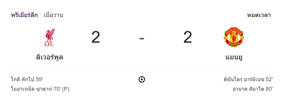 จาก : ผลบอลสด พรีเมียร์ลีก 2024 ระหว่าง ลิเวอร์พูล 2-2 แมนเชสเตอร์ ยูไนเต็ด วันนี้ 5/1/68 – บ้านกีฬา