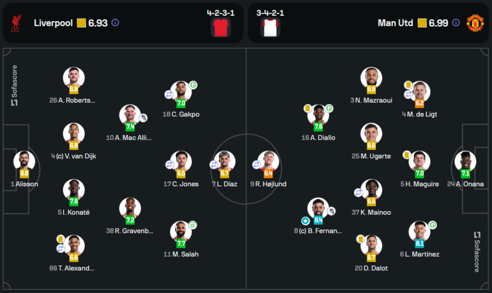ลิเวอร์พูลเน้นแผน 4-2-3-1 โดยมี โมฮาเหม็ด ซาลาห์ เป็นหัวใจสำคัญในเกมรุก และ อเล็กซิส แม็ค อัลลิสเตอร์ เป็นตัวเชื่อมเกมที่ยอดเยี่ยม เกมรับดูแข็งแกร่ง แต่ยังมีช่องโหว่ในจังหวะสวนกลับ ด้านแมนเชสเตอร์ ยูไนเต็ดใช้แผน 3-4-2-1 เน้นการบุกด้วยการประสานงานระหว่าง บรูโน่ แฟร์นันด์ส และ อาหมัด ดิยัลโล่ ที่เล่นได้อย่างมีประสิทธิภาพ แต่ยังขาดความเฉียบขาดในจังหวะสุดท้าย