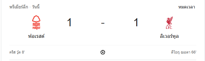 ฟอเรสต์ไม่ยอมง่าย! เปิดบ้านตีเสมอลิเวอร์พูล 1-1 ในศึกพรีเมียร์ลีก