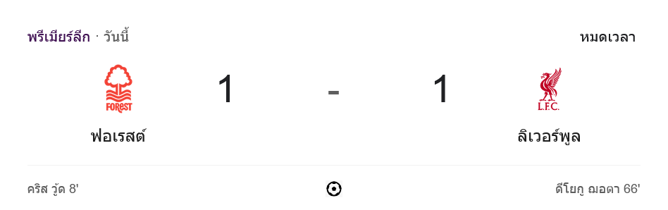 จาก : ผลบอลสด พรีเมียร์ลีก 2024 ระหว่าง น็อตติ้งแฮม ฟอเรสต์ 1-1 ลิเวอร์พูล วันนี้ 15/1/68 – บ้านกีฬา