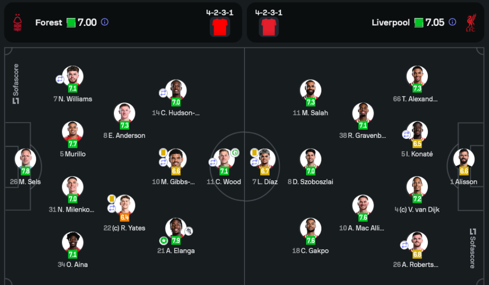 แอนโทนี อีลังกา จากฟอเรสต์ ได้คะแนน 7.9 จากการแอสซิสต์และความมุ่งมั่นที่ช่วยทีมเก็บแต้มสำคัญ