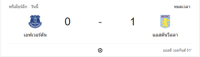นาทีที่ 96: กรรมการเป่านกหวีดจบเกม แอสตัน วิลล่าบุกมาเฉือนเอฟเวอร์ตัน 1-0