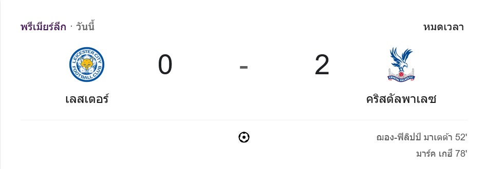 จาก : ผลบอลสด พรีเมียร์ลีก 2024 ระหว่าง เลสเตอร์ ซิตี้ 0-2 คริสตัล พาเลซ วันนี้ 16/1/68 – บ้านกีฬา