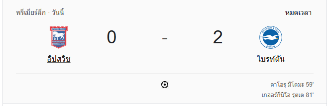ไบรท์ตันบุกซัดอิปสวิช 2-0 ศึกพรีเมียร์ลีก 2024