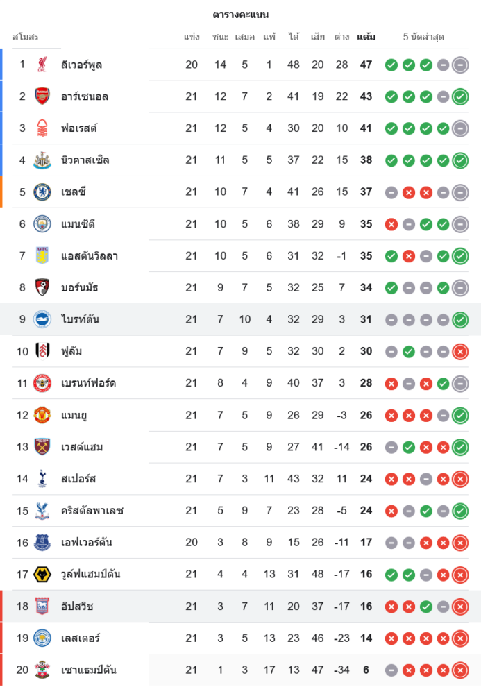 ชัยชนะนัดนี้ส่งให้ ไบรท์ตัน ขยับขึ้นมาอยู่ที่ 9 มี 31 คะแนน ส่วน อิปสวิช ยังจมโซนตกชั้นที่อันดับ 18