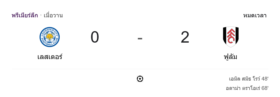 ช่วงเวลาที่เหลือแม้เลสเตอร์จะพยายามบุกหนัก แต่ก็ทำอะไรไม่ได้มากนัก จบเกม ฟูแล่มบุกเอาชนะเลสเตอร์ 2-0 ส่งผลให้เจ้าบ้านยังคงจมอยู่โซนตกชั้น