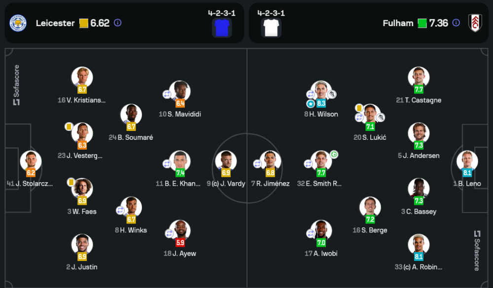 ฟูแล่มใช้ระบบ 4-2-3-1 เช่นกัน แต่เน้นการครองบอลและโจมตีด้วยบอลเร็วริมเส้น การเชื่อมเกมของ แฮร์รี่ วิลสัน และ เอมิล สมิธ โรว์ สร้างความแตกต่างให้กับเกม ขณะที่แนวรับของพวกเขาก็จัดการกับแนวรุกของเลสเตอร์ได้อย่างไร้ที่ติ