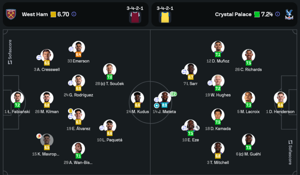 ฌอง-ฟิลิปป์ มาเตต้า ทำผลงานได้อย่างโดดเด่นในเกมนี้ ซัดสองประตูสำคัญให้ คริสตัล พาเลซ บุกมาคว้าชัยเหนือ เวสต์แฮม นอกจากนี้ยังเป็นตัวหลักในการโจมตีของทีมและสร้างความปั่นป่วนให้กับแนวรับเจ้าถิ่นตลอด 90 นาที