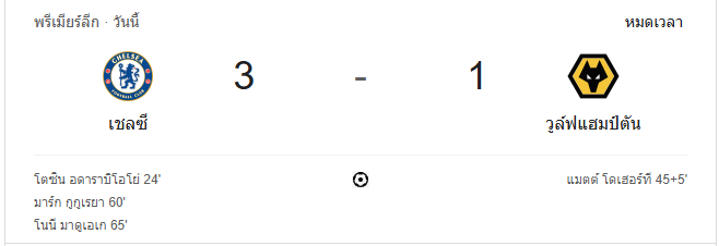 รายงานผลบอลสด: เชลซี 3-1 วูล์ฟแฮมป์ตัน