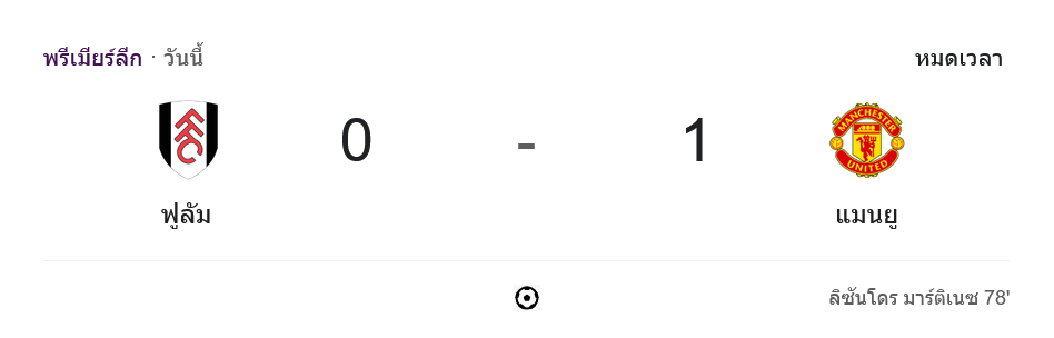 จาก : ผลบอลสด พรีเมียร์ลีก 2024 ระหว่าง ฟูแล่ม 0-1 แมนเชสเตอร์ ยูไนเต็ด วันนี้ 27/1/68 – บ้านกีฬา