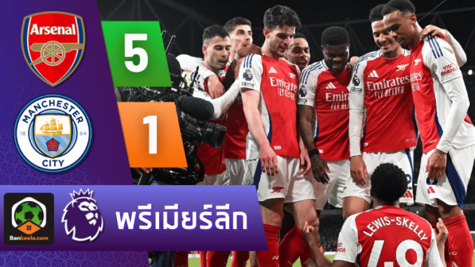 ศึก พรีเมียร์ลีก 2024 นัดบิ๊กแมตช์ระหว่าง อาร์เซน่อล เปิดบ้านรับการมาเยือนของ แมนเชสเตอร์ ซิตี้ กลายเป็นเกมที่เต็มไปด้วยความมันส์เกินคาด เมื่อ “ปืนใหญ่” ระเบิดฟอร์มสุดโหดถล่มแชมป์เก่าไปถึง 5-1 ทำเอาแฟนบอลที่ติดตาม ผลบอลสด ต้องตะลึงกับความเฉียบขาดของลูกทีมมิเกล อาร์เตต้า