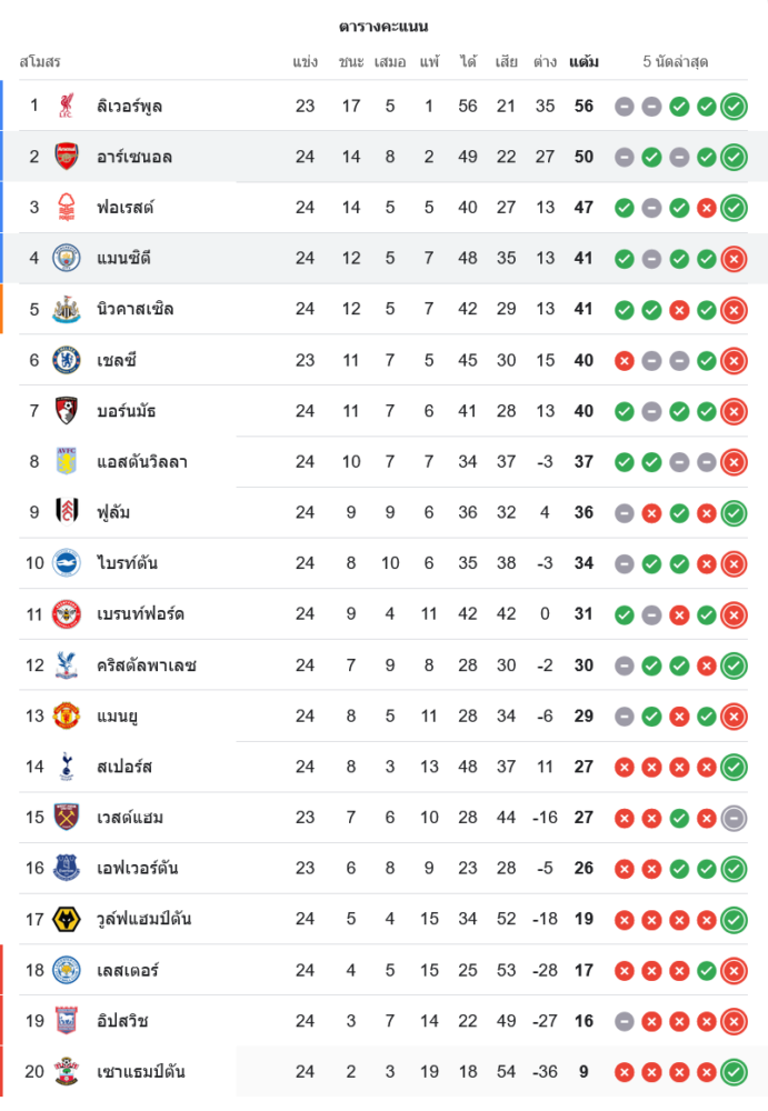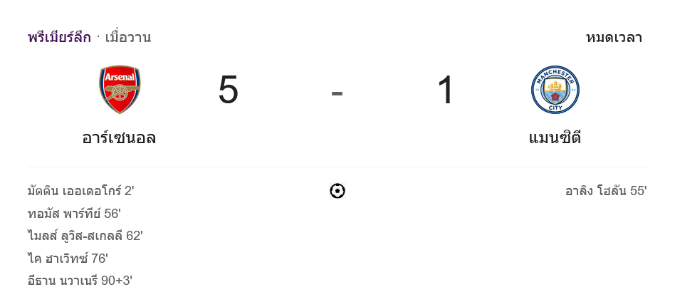 จาก : ผลบอลสด พรีเมียร์ลีก 2024 ระหว่าง อาร์เซนอล 5-1 แมนเชสเตอร์ ซิตี้ วันนี้ 2/2/68 – บ้านกีฬา
