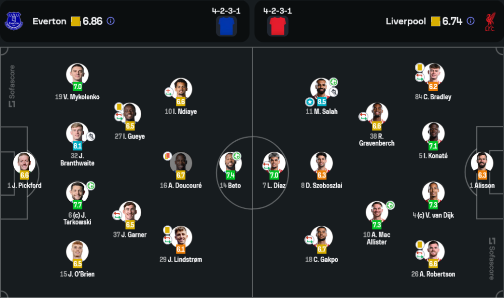 แม้ว่าลิเวอร์พูลจะมีความเหนือกว่าด้านการครองบอลและความแม่นยำในการจ่าย แต่เอฟเวอร์ตันสามารถใช้ลูกตั้งเตะและจังหวะสวนกลับสร้างโอกาสอันตราย ซึ่งนำไปสู่ประตูตีเสมอในช่วงทดเจ็บนาทีที่ 90+8 ส่งผลให้ทั้งสองทีมต้องแบ่งแต้มกันไปในศึกเมอร์ซีย์ไซด์ดาร์บี้สุดมันส์ครั้งนี้