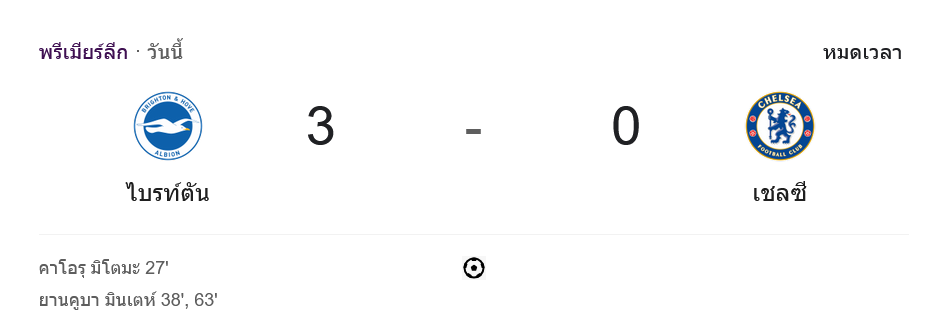 จาก : ผลบอลสด พรีเมียร์ลีก 2024 ระหว่าง ไบรท์ตัน โฮฟ อัลเบี้ยน 3-0 เชลซี วันนี้ 15/2/68 – บ้านกีฬา