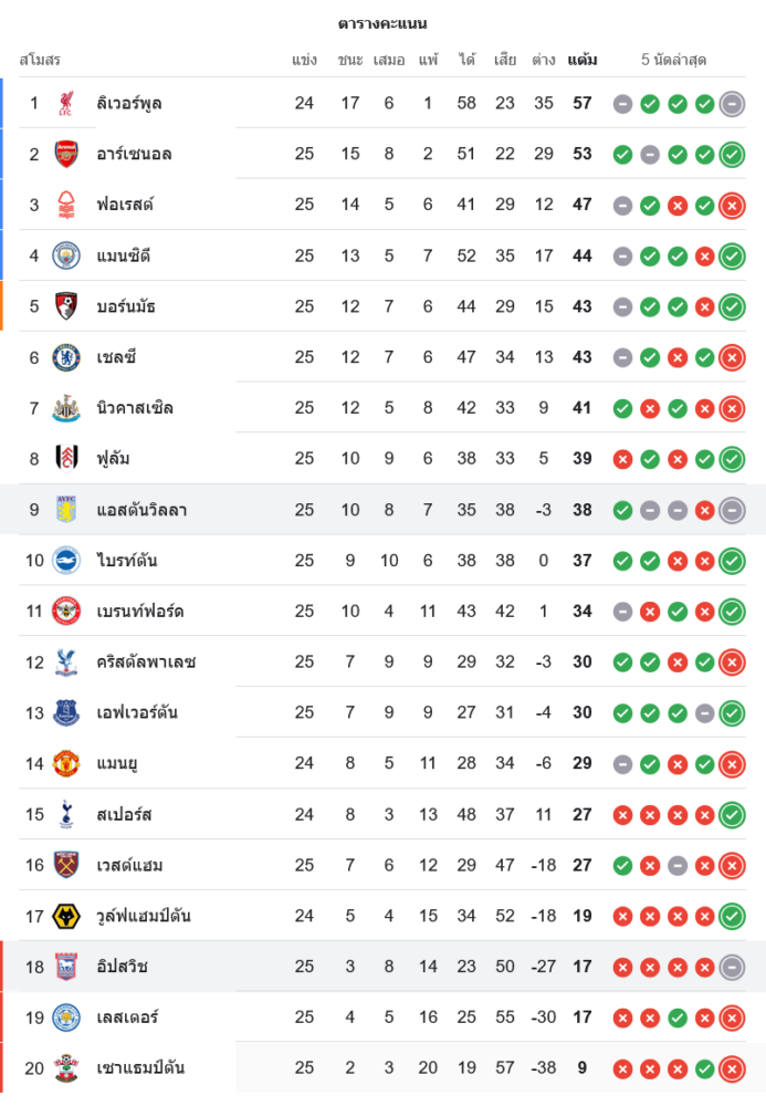 จาก : ผลบอลสด พรีเมียร์ลีก 2024 ระหว่าง แอสตัน วิลล่า 1-1 อิปสวิช ทาวน์ วันนี้ 15/2/68 – บ้านกีฬา