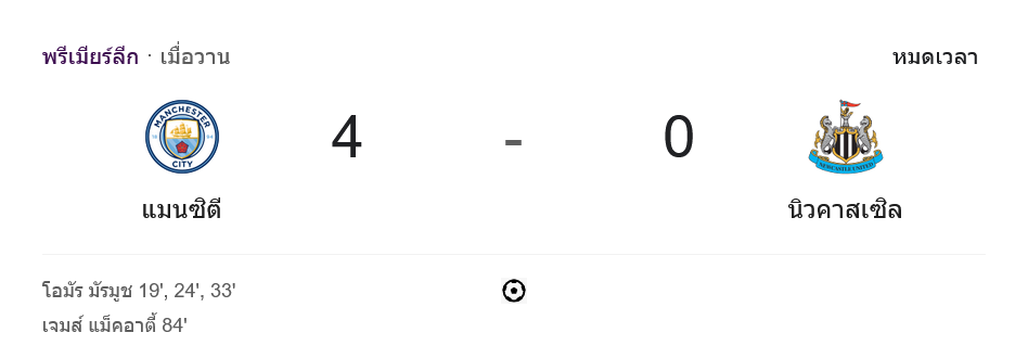 จาก : ผลบอลสด พรีเมียร์ลีก 2024 ระหว่าง แมนเชสเตอร์ ซิตี้ 4-0 นิวคาสเซิ่ล ยูไนเต็ด วันนี้ 15/2/68 – บ้านกีฬา