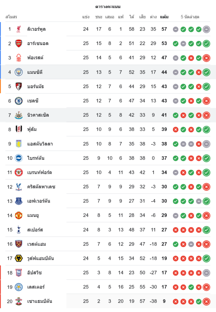 ชัยชนะของ แมนฯ ซิตี้ ทำให้พวกเขาเก็บเพิ่มเป็น 44 คะแนน ขยับขึ้นอันดับ 4 ตามหลัง ฟอเรสต์ อยู่ 3 แต้ม ส่วน นิวคาสเซิ่ล แพ้นัดนี้ยังคงมี 41 คะแนน รั้งอันดับ 7 และต้องเร่งฟอร์มหากต้องการลุ้นโควตายุโรป