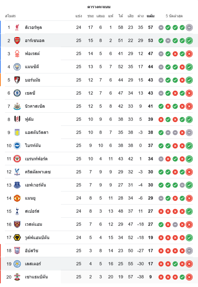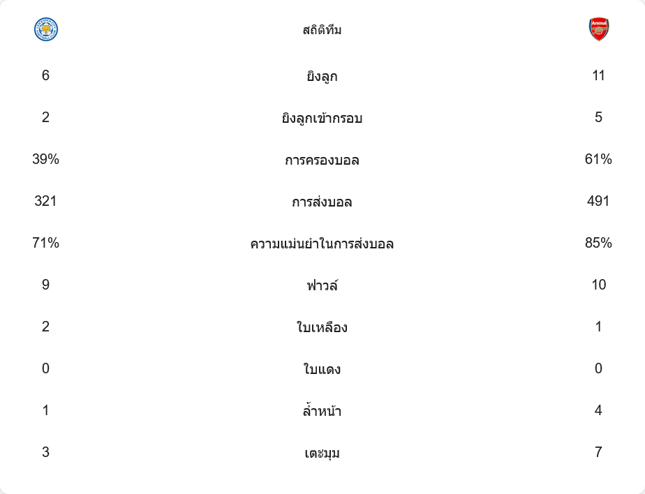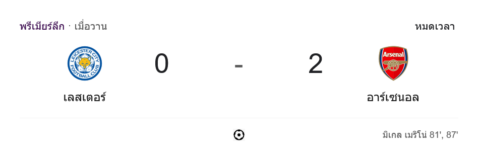 จาก : ผลบอลสด พรีเมียร์ลีก 2024 ระหว่าง เลสเตอร์ ซิตี้ 0-2 อาร์เซนอล วันนี้ 15/2/68 – บ้านกีฬา