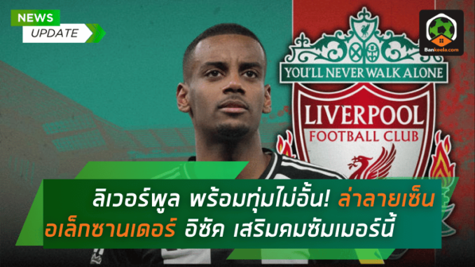 ลิเวอร์พูล สโมสรยักษ์ใหญ่แห่ง พรีเมียร์ลีก อังกฤษ เตรียมสร้างความฮือฮาในตลาดนักเตะซัมเมอร์นี้ ด้วยการล้มกลยุทธ์การเสริมทัพแบบเดิม พร้อมทุ่มงบมหาศาลเพื่อคว้าตัว อเล็กซานเดอร์ อิซัค ดาวยิงฟอร์มแรงจาก นิวคาสเซิ่ล ยูไนเต็ด มาร่วมทัพ โดยสื่อดัง สกายสปอร์ตส์ รายงานว่าค่าตัวของแข้งวัย 25 ปีรายนี้อาจพุ่งสูงถึง 180 ล้านยูโร หรือราว 7,020 ล้านบาท