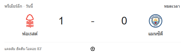 - นาทีที่ 95 กรรมการเป่าหมดเวลา น็อตติ้งแฮม ฟอเรสต์ เอาชนะ แมนเชสเตอร์ ซิตี้ 1-0!