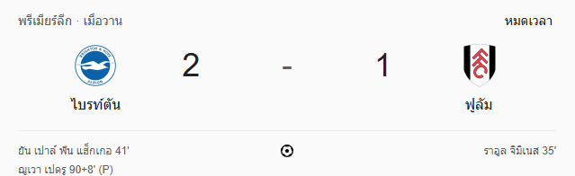 • นาทีที่ 48 กรรมการเป่าหมดครึ่งแรก ไบรท์ตัน 1-1 ฟูแล่ม
