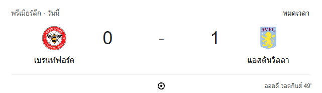 - นาทีที่ 47 กรรมการเป่าหมดครึ่งแรก เบรนท์ฟอร์ด 0-0 แอสตัน วิลล่า