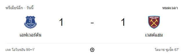 ผลบอลสด พรีเมียร์ลีก 2024 ระหว่าง เอฟเวอร์ตัน 1-1 เวสต์แฮมยูไนเต็ด วันนี้ 15/3/68