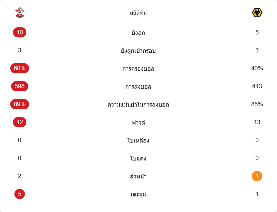 เกมนี้แสดงให้เห็นถึงแท็กติกของ วูล์ฟแฮมป์ตัน ที่เน้นเกมรับแน่นหนา และรอใช้โอกาสสวนกลับเร็ว ขณะที่ เซาแธมป์ตัน แม้จะครองบอลมากกว่า (60%) แต่กลับจบสกอร์ได้น้อย และถูกเกมโต้กลับเล่นงานถึงสองครั้ง ซึ่งเป็นจุดที่ต้องปรับปรุงหากต้องการอยู่รอดในลีกต่อไป วิเคราะห์บอล คู่นี้ วูล์ฟแฮมป์ตันมีเกมสวนกลับที่เฉียบคมกว่า จึงสามารถเก็บชัยชนะไปได้