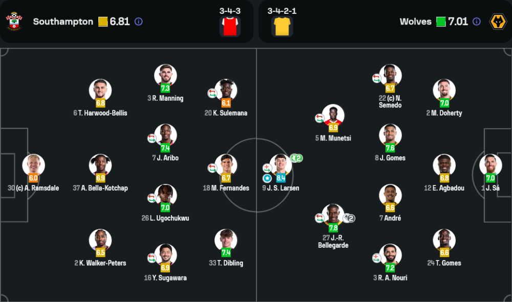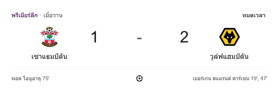เซาแธมป์ตัน ไม่ยอมแพ้ และมาได้ประตูตีไข่แตกในนาทีที่ 75 จากจังหวะที่ พอล โอนัวชู ได้บอลจาก มาติอุส แฟร์นานเดส ก่อนซัดผ่านมือผู้รักษาประตูเข้าไป แต่สุดท้ายก็ไม่สามารถทำอะไรเพิ่มได้ จบเกม วูล์ฟแฮมป์ตัน บุกมาเก็บสามแต้มสำคัญด้วยชัยชนะ 2-1