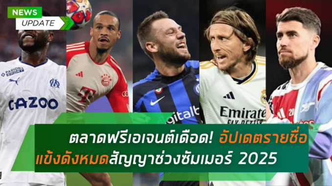 ตลาดนักเตะช่วง ซัมเมอร์ 2025 กำลังจะเป็นอีกหนึ่งหน้าประวัติศาสตร์ของวงการฟุตบอลยุโรป เมื่อนักเตะระดับท็อปหลายรายกำลังจะหมดสัญญากับต้นสังกัด กลายเป็น ฟรีเอเจนต์ ที่สามารถย้ายทีมได้แบบไม่มีค่าตัว สโมสรต่าง ๆ จึงจับตาดูสถานการณ์อย่างใกล้ชิด เพราะนี่อาจเป็นโอกาสทองในการคว้าตัวแข้งคุณภาพเข้ามาเสริมทัพแบบไม่ต้องเสียเงินค่าตัวแม้แต่ปอนด์เดียว