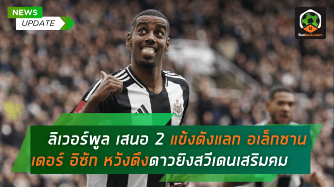 สถานการณ์การเสริมทัพของ ลิเวอร์พูล กำลังเข้มข้นขึ้นอย่างมาก หลังจากที่มีรายงานออกมาว่า ทีมดังแห่งถิ่น แอนฟิลด์ เตรียมทำการยื่นข้อเสนอสุดพิเศษให้กับ นิวคาสเซิ่ล ยูไนเต็ด โดยหวังคว้าตัว อเล็กซานเดอร์ อิซัก กองหน้าตัวเก่งทีมชาติ สวีเดน มาร่วมทัพ ด้วยแผนการที่กล้าได้กล้าเสีย เสนอชื่อของสองนักเตะชื่อดังอย่าง ดีโอโก้ โชต้า และ ฮาร์วีย์ เอลเลียตต์ เป็นส่วนหนึ่งในดีลที่ท้าทายนี้
