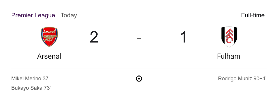 จาก : ผลบอลสด พรีเมียร์ลีก 2025 ระหว่าง อาร์เซนอล 2-1 ฟูแล่ม วันนี้ 2/4/68 – บ้านกีฬา