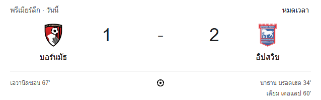 รายงานสด ผลบอลสด: บอร์นมัธ 1-2 อิปสวิช ทาวน์